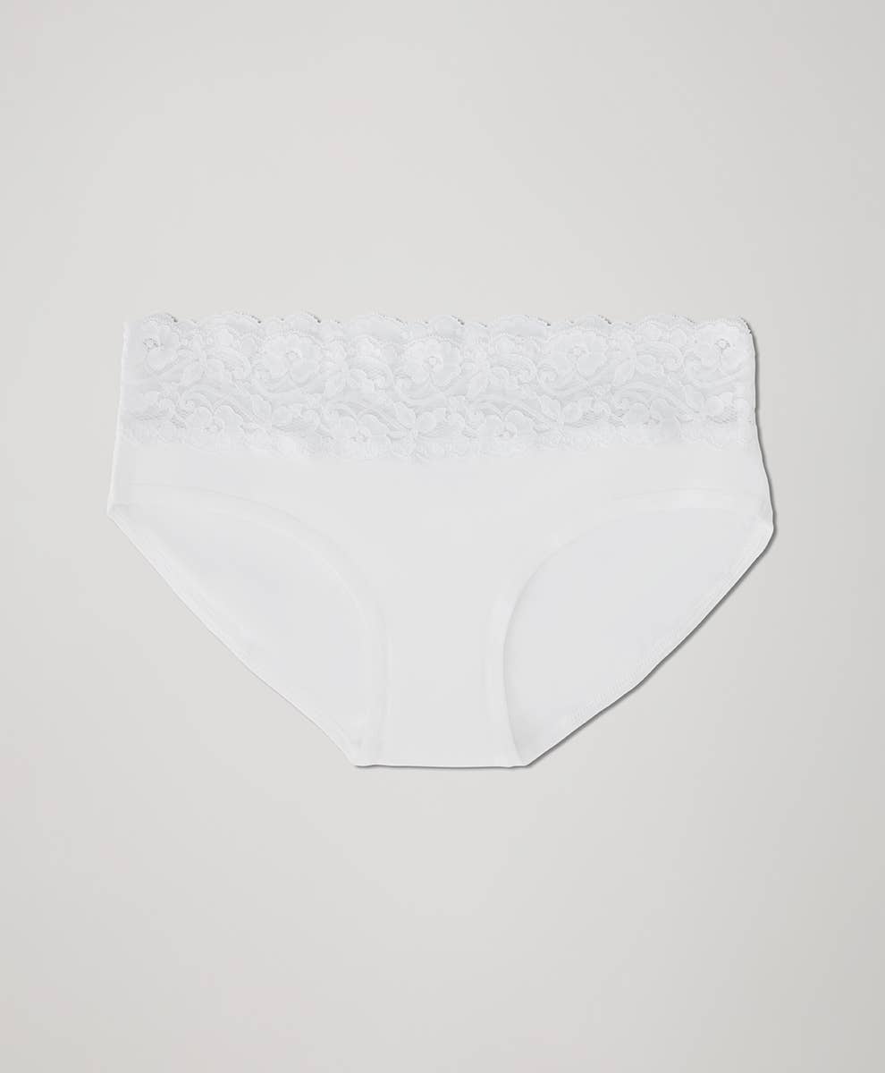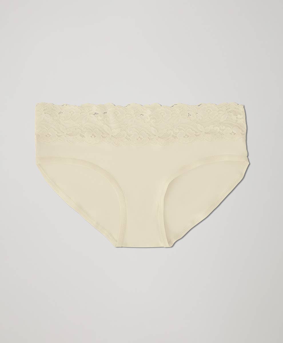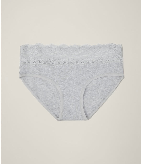 Sexy without the synthetics. A breathable cotton/lace underwear that you’ll look amazing in (without the synthetic fabrics). Made with soft GOTS-certified organic cotton. Has a mid rise waist with full back coverage and low cut legs. Tagless, soft lace waistband. True to size. Hand wash. Line dry.